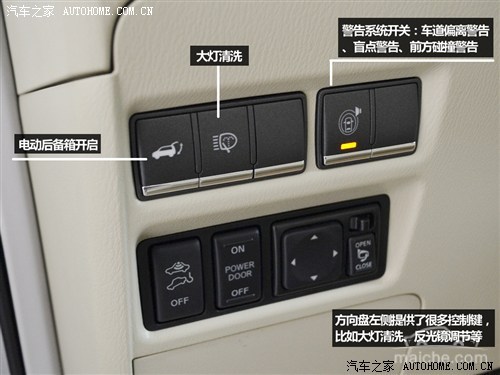 中央触摸屏的尺寸达到了7英寸,并且提供了DVD播放、车辆信息、40G硬盘式GPS导航和全景倒车影像等众多功能。中控台和方向盘布置的繁多功能按键也是一大特色,不过要想完全熟悉,还是需要些时间的。