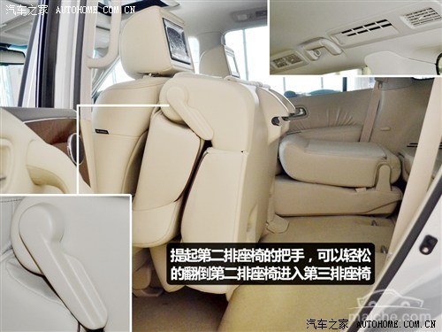 提起第二排座椅的把手,可以轻松的翻倒第二排座椅进入第三排座椅。得益于1960mm的车高和3075mm的轴距,第三排的实用性还是相当不错的,不过虽然设计上可以乘坐3人,但中间的乘坐舒适性会降低。