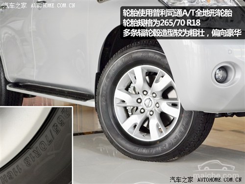 该车采用了普利司通A/T全地形轮胎,规格为265/70 R18,更加偏重城市的舒适性。相对于这样的车身尺寸,18寸轮毂并不算大,多条辐轮毂造型较为粗壮,也更显豪华。
