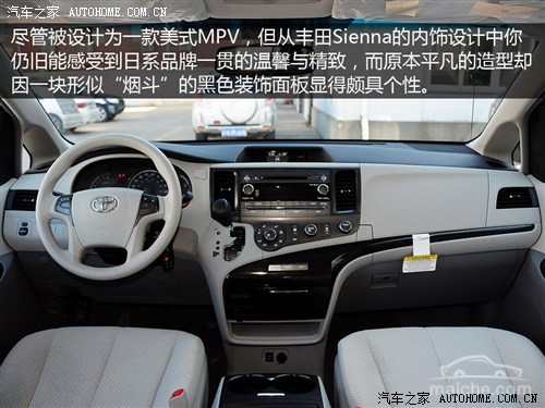 [汽车之家 新车图解] 在丰田种类繁多的MPV车型中,“Sienna”这个名字或许对于许多国内消费者而言并不熟悉,的确,相比于堪称“豪华MPV标杆”的埃尔法以及有着“大霸王”之称的普瑞维亚,这个一度被称为“塞纳”的MPV并没有给我们留下太多印象,但在北美市场,丰田Sienna却通过三代车型的衍变彻底站稳了脚跟。那么,这样一台撒发着浓重美式气息的MPV是否对中国消费者的口味呢?下面就请跟随我们的实拍文章一探究竟!