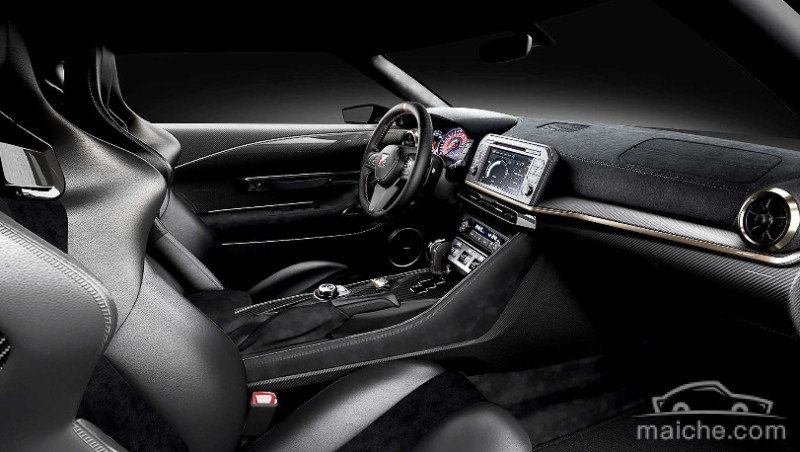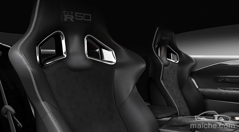 GT-R50的内饰相比此前发布的概念版本更加务实,整体设计可以看到现款车型的影子。不同的是新车采用了两种碳纤维面板,并搭配有大量的Alcantara仿翻毛皮材料,进一步提升了车内质感。