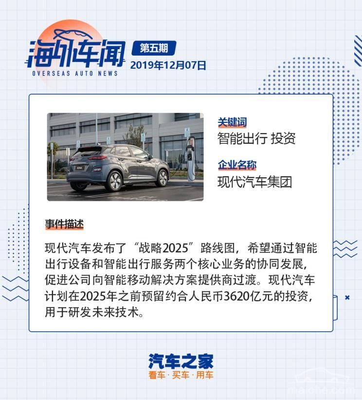 《海外车闻》是汽车之家行业组打造的一档海外新闻综合类栏目。放眼全球,希望能为大家展示最前沿的资讯,爆料热点事件真相,探索汽车行业的各种新鲜辣闻。足不出户,带你走遍世界的每一个角落,海外汽车市场今天又发生了哪些大事,我们将一一为你道来。
