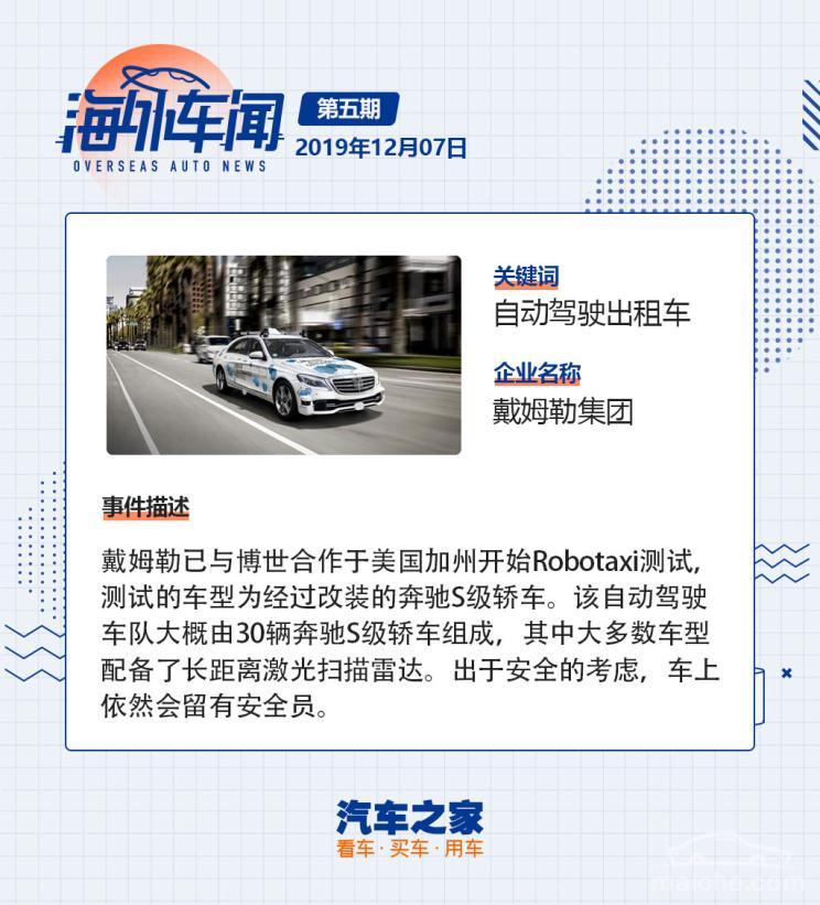 [汽车之家 行业] 环境问题一直是大家关注的焦点。本周,戴姆勒与大众双双卷入“排放门”事件,他们拿出了什么样的应对措施?在环境保护方面又有哪些车企做出了努力?下面就请跟随汽车之家的脚步,看看这一期的海外车圈发生了哪些大事吧!