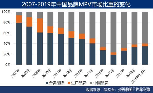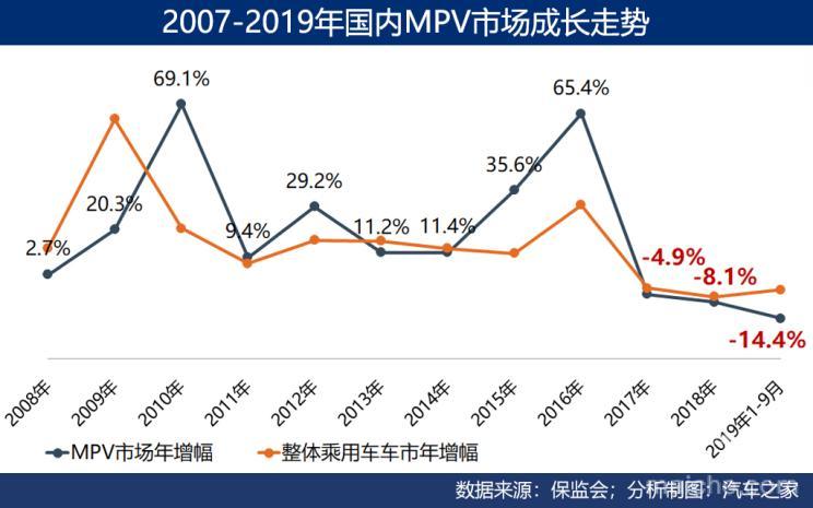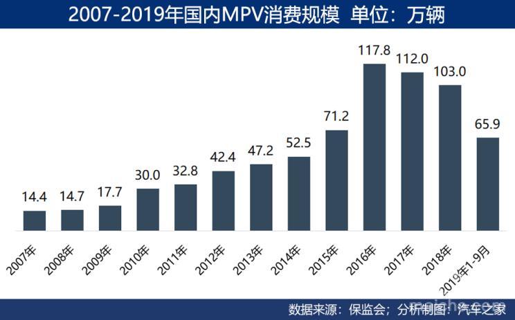 以上险量计,国内MPV市场的体量并不大,只是个年消费量百万辆级别的细分市场,且包括进口车在内。目前MPV在乘用车市场上的比重不到5%,早年间只有2%多点,2016年首次超过4%,今年前三季度占比4.2%。
