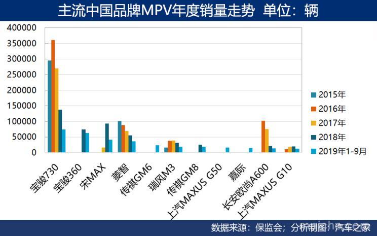 再看主流中国品牌MPV的年度销量走势,近几年下滑趋势非常明显,除了宝骏730,年销量多在5万辆以下,卖的好的,今年下半年月销量基本也就三五千辆的水平,今年较热门的传祺GM8在8月和9月的上险量都不足千辆。这样的消费体量,让外资车企并没有什么欲望下手。