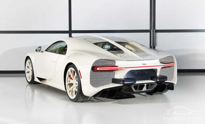 外观方面,新车整体造型和Chiron普通版并无太大差别,细节上采用了爱马仕定制的奶油白车漆,轮圈配色也与车漆保持一致。此外,Chiron爱马仕定制版还在中网格栅、前唇和发动机侧进气口处采用了爱马仕的独特花纹。作为一款定制的跑车,新车尾部的大型扰流板升起后,爱马仕专属的花纹还会大面积出现在后散热口处,散发出优雅和奢华的气息。这款车型绝对是独一无二的。