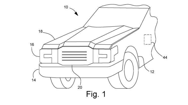 [汽车之家 新能源] 日前福特向美国专利局申请了一项纯电动版F-150(参数|询价)的专利,该项专利曝光了纯电动版F-150将有一个前备厢,而且从车头的格栅处就可以打开,用于车主储存物品。