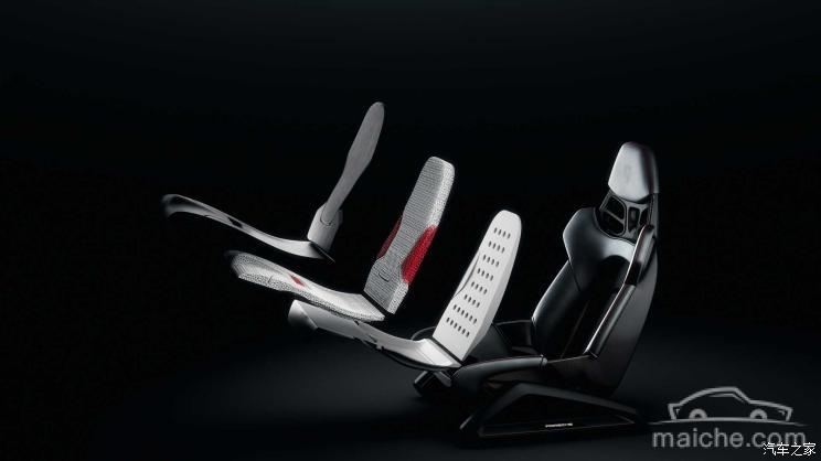 采用3D打印技术制作的桶式座椅以保时捷的轻型桶式座椅为基础,并采用多层复合结构,由聚丙烯塑料发泡材料(EPP)制成的基础支架、聚氨酯基制作的座椅填充物等构成。使用该技术打造的座椅除了更加符合人体工程学之外,它还具有十分独特的造型、更轻的重量、更高的舒适度以及更好的透气度。