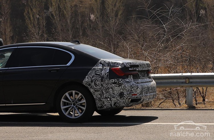 从曝光的谍照来看,实拍宝马7系伪装车目前正在由外方人员进行路试,主要伪装覆盖集中在车头与车尾,整体侧面流线并没有明显改变。对比现款车型,伪装车前进气格柵面积并没有进一步增大,同时将镀铬改为更加凸显运动的黑色装饰,下进气格柵与下包围也采用了全新设计,整体设计风格更加偏向运动。新车车尾设计上的改动并不明显,依旧在用现款L型尾灯组。实测车型在左右灯组上方,均为标示预留了粘贴位,因此伪装车型很可能是xDrive四驱版本或其他特殊动力版本车型。