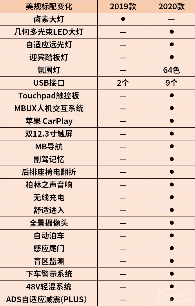 除了上述差别之外,新款GLS还有一个很大的变化,就是标准配置比老款高出很多。