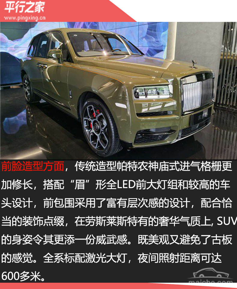 车身尺寸劳斯莱斯库里南鸟巢定制版,整体远大于宾利添越( 参数 | 询价 )与路虎揽胜( 参数 | 询价 )长轴距版。