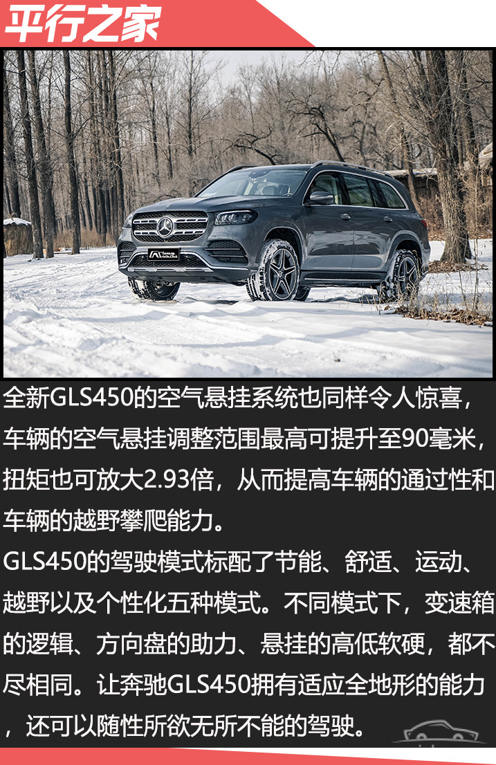 最为一款全尺寸SUV,平时的越野性能还是不可或缺的,奔驰GLS450搭载的4MATIC全时四驱系统,前轴、后轴动力可在0:100之间按需自由分配,根据不同的路况来调节。在公路上,4MATIC会调节到一个最佳驱动力分配比例,从而提高行驶的稳定性,使车辆更容易被驾驭。在越野时,它同样会为具备最佳附着力的车轮提供适合的动力分配比例,配合强大先进的电子限滑系统从而轻松的完成限滑、脱困等越野行为。