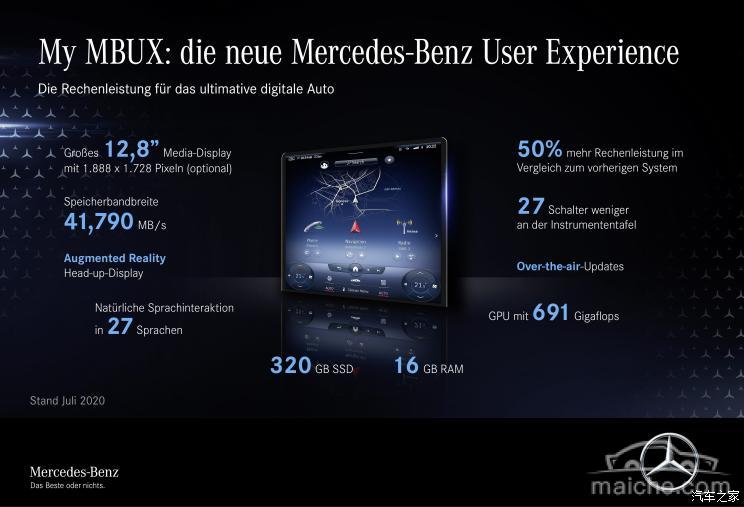 [汽车之家 新闻] 7月8日,梅赛德斯官方通过Mercedes Me平台,在线上发布了全新一代梅赛德斯-奔驰S级(参数|询价)(以下简称全新奔驰S级)的MBUX信息娱乐系统。新车将使用超大的中控触控显示屏,并搭载有指纹识别、面部识别和AR增强现实功能技术的导航系统。据悉,全新奔驰S级将在9月份进行全球首发。