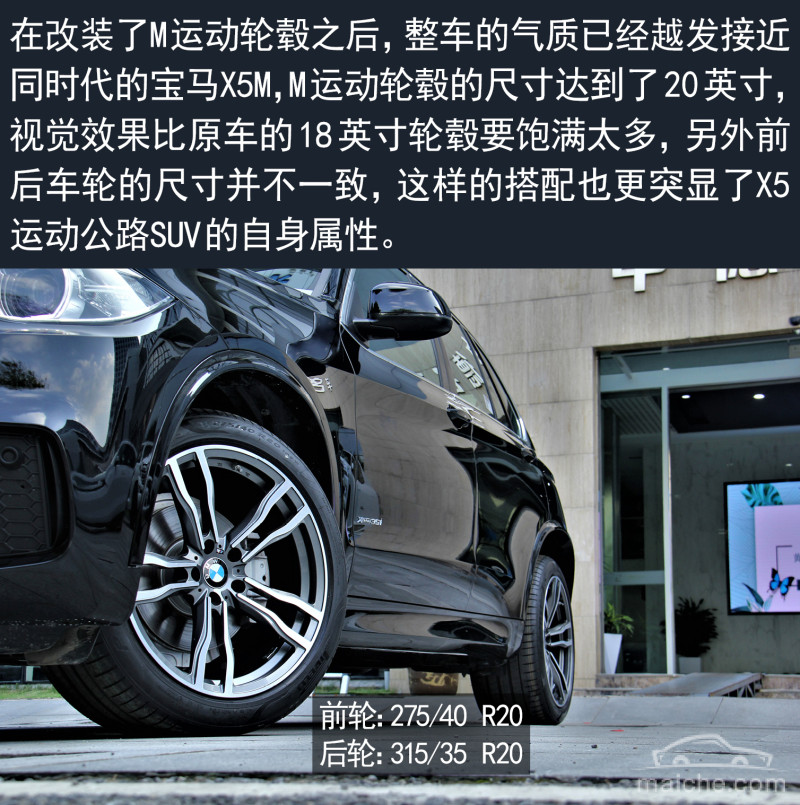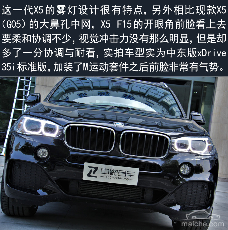 我们拿到的这辆X5 F15车型其实原本是中东版的xDrive 35i车型,但是中德名车为它加装了一整套的M运动套件,因此整辆车的气质有了一个非常显著的提升,如果不是车身侧面的xDrive 35i车标,第一眼看过去还真的很容易和宝马X5M搞混淆。