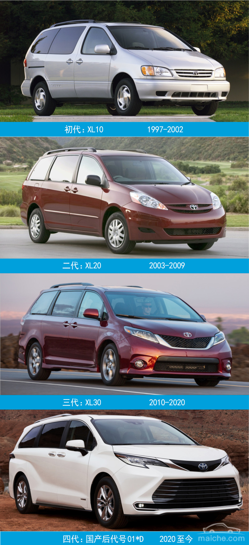 介绍完经销商,我们把注意力回归到车上来,首先来关注一下塞纳的历史,丰田塞纳从诞生到现在,一共发展出了四代车型,虽说塞纳是一款针对北美市场的特供车型,但是其实和中国的渊源还是颇为深厚的,除了第一代XL10之外,第二代和第三代车型在国内的保有量都不算小,而且第四代车型也将在不久的将来进行国产,一汽丰田和广汽丰田都将生产这款颇具美式味道的日系MPV。