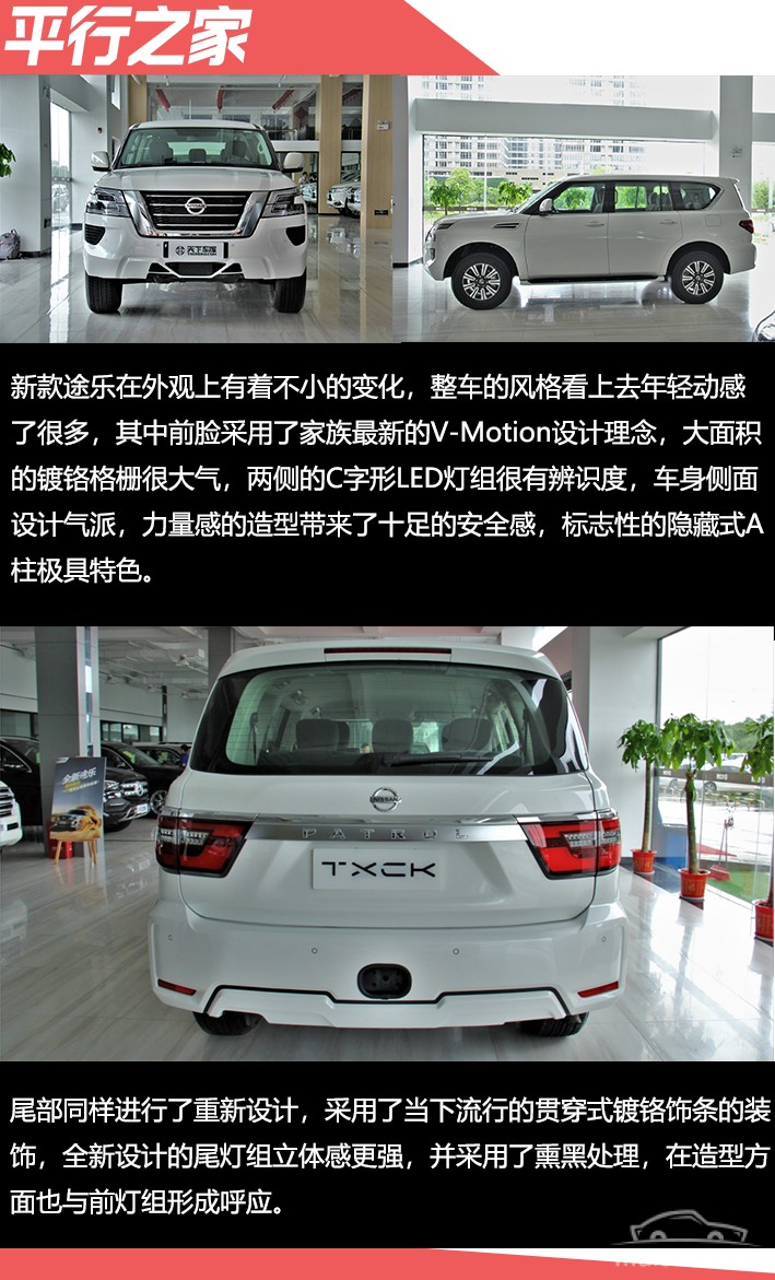 说到硬派越野,大多数人首先会想到丰田的陆巡( 参数 | 询价 )和普拉多( 参数 | 询价 ),这两款是最具代表型的车型。但实际上,日产途乐( 参数 | 询价 )无论是硬派越野能力还是影响力都堪称这一级别车型中的佼佼者,更具性价比的表现得到了很多越野爱好者的青睐,对普拉多的霸主地位造成了比较大的威胁。今天小编就来给大家介绍下这款在中东经久不衰的传奇车型—20款途乐Y62 4.0。