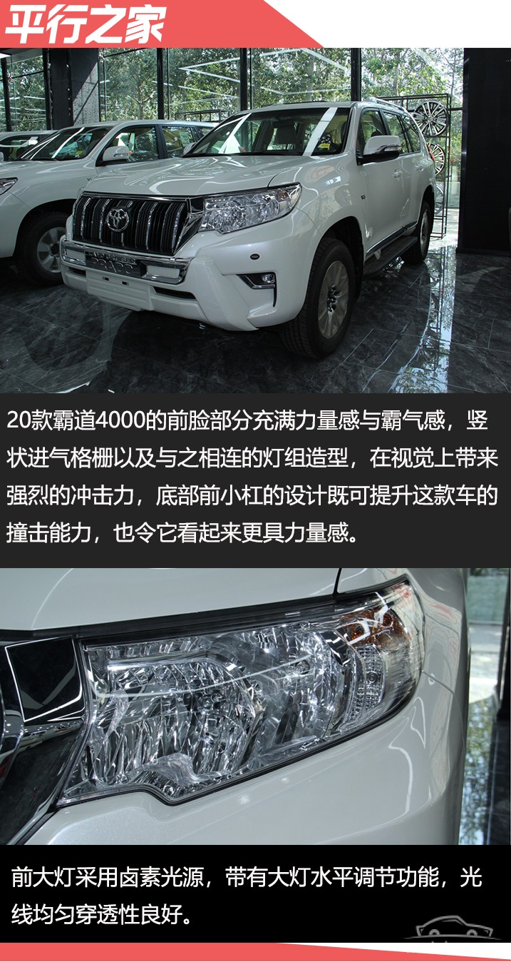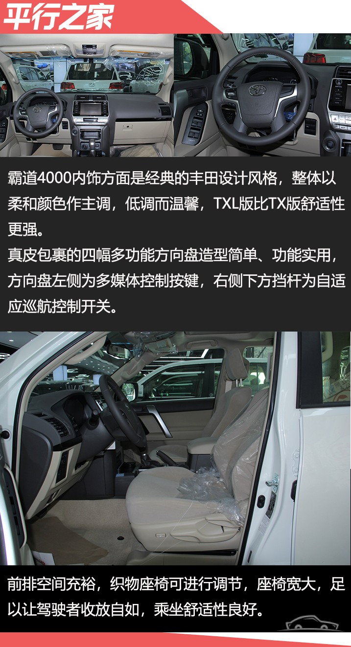在平行进口车市中,要说首屈一指的热门车型,那就非丰田霸道系列莫属了。其中霸道4000以其卓越的越野性能、霸气的外观造型、宽敞的内饰空间、充沛的动力深受人们的关注。霸道4000的车型中,TX为丐版,TXL则为更注重舒适性的普通版,今天小编就给大家介绍一下20款霸道4000TXL版吧。