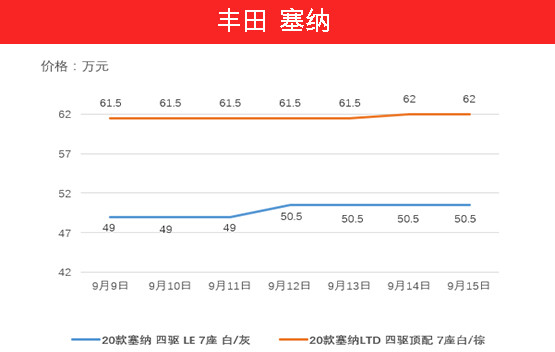 踏入9月,途乐20款车型起步价有所下降,从53万元降到了52.5万元左右,19款车型反而上涨了5000元,OPT车型保持不变。