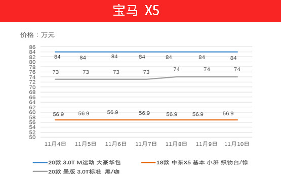 宝马X5的价格也随着中规车型的货源紧张而上涨。