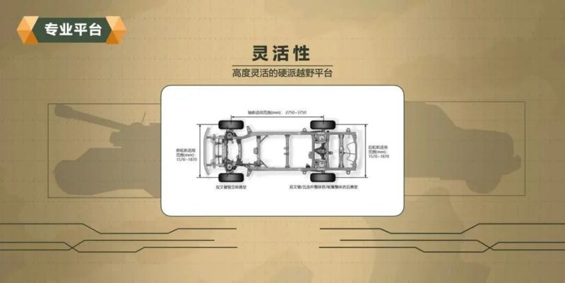 其次,坦克旗下的车型都出自坦克平台,这是在坦克品牌发布的时候,就公开的信息。坦克平台虽然是高度灵活的硬派越野平台,但是轴距,包括车身宽度也是限定在一个范围内的。根据坦克平台公开的信息,坦克平台支持轴距2750mm~3750mm。前后轮距适用范围1570mm~1870mm。这就基本上限定了坦克平台上诞生的车型,最小也是轴距2750mm以上的硬派越野车。