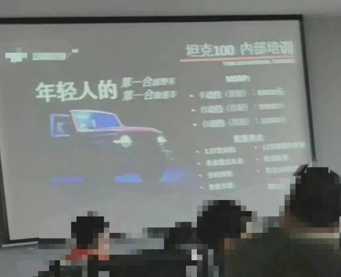 前几日,网上放出了一组所谓的坦克100内部培训图片。照片很模糊,但依稀可以看到“坦克100”、“1.5T发动机”、“年轻人的第一台越野车”等字样,关键价格非常劲爆,定在8.99万元起。车迷们奔走相告,长城版的吉姆尼终于来了。
