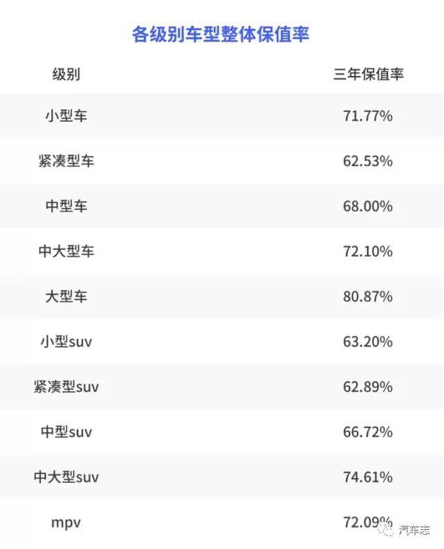 大体说完,我们在继续将其细分下来,每个类别的车型里选出一到两款保值率最高的车型介绍。
