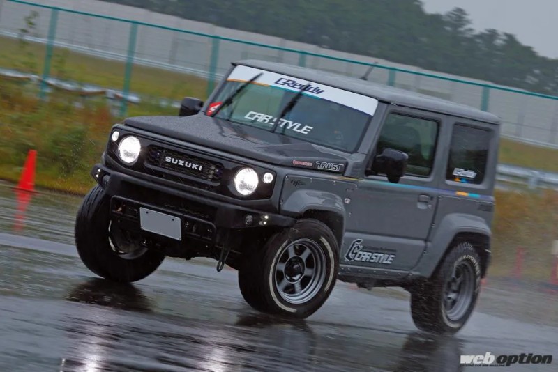 如今在国内最新一代吉姆尼的平行进口车价格已经超过30万,但却只能获得一台1.5L四缸自然吸气发动机,最大102匹马力、130牛米扭矩输出,未免有些太过寒酸。所以日本Carstyle联合美国GPP(GREDDY PERFOMANCE PRODUCTS)开发了一套涡轮套件,将动力直接提升至250匹马力。在日本著名车手山田英二驾驶后也感叹:这台车动力太大了,在直线上都不会正常走了了(测试当天下雨)。