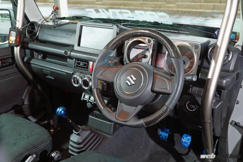 来到内饰,这台吉姆尼不仅有Bride赛车座椅,Sparco的赛车安全带,还有在赛车上才会出现的防滚架,可想而知这台车为了获得强大的动力,似乎也想到了一些不太好的可能性啊!